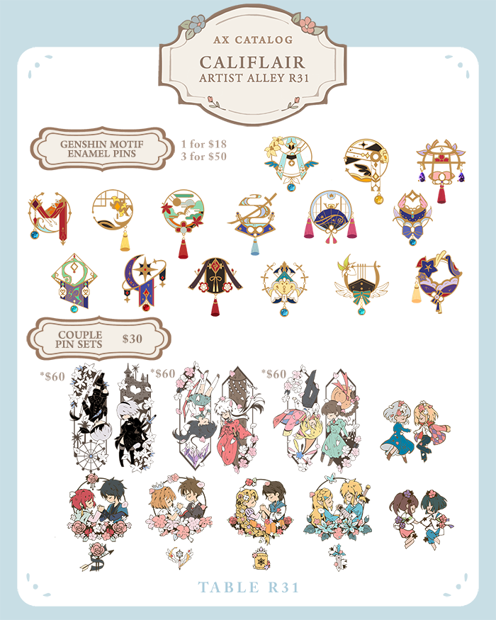 ♚ Are your commissions open?I am generally not open to commissions due to time constraints, but I sometimes do accept them upon inquiry, based on the commission scope & how well I can deliver to the commissioner's expectations!♚ An item I want from your store is out of stock! When will it be restocked?Each product type has its own manufacturing & processing schedule, so please feel free to send an inquiry via email!♚ Are you open for merch or pin trade?Thank you for your interest! I don't do trades, online or at cons, mutuals or not. I'd rather support artists than asking to trade with me--thank you for your understanding!